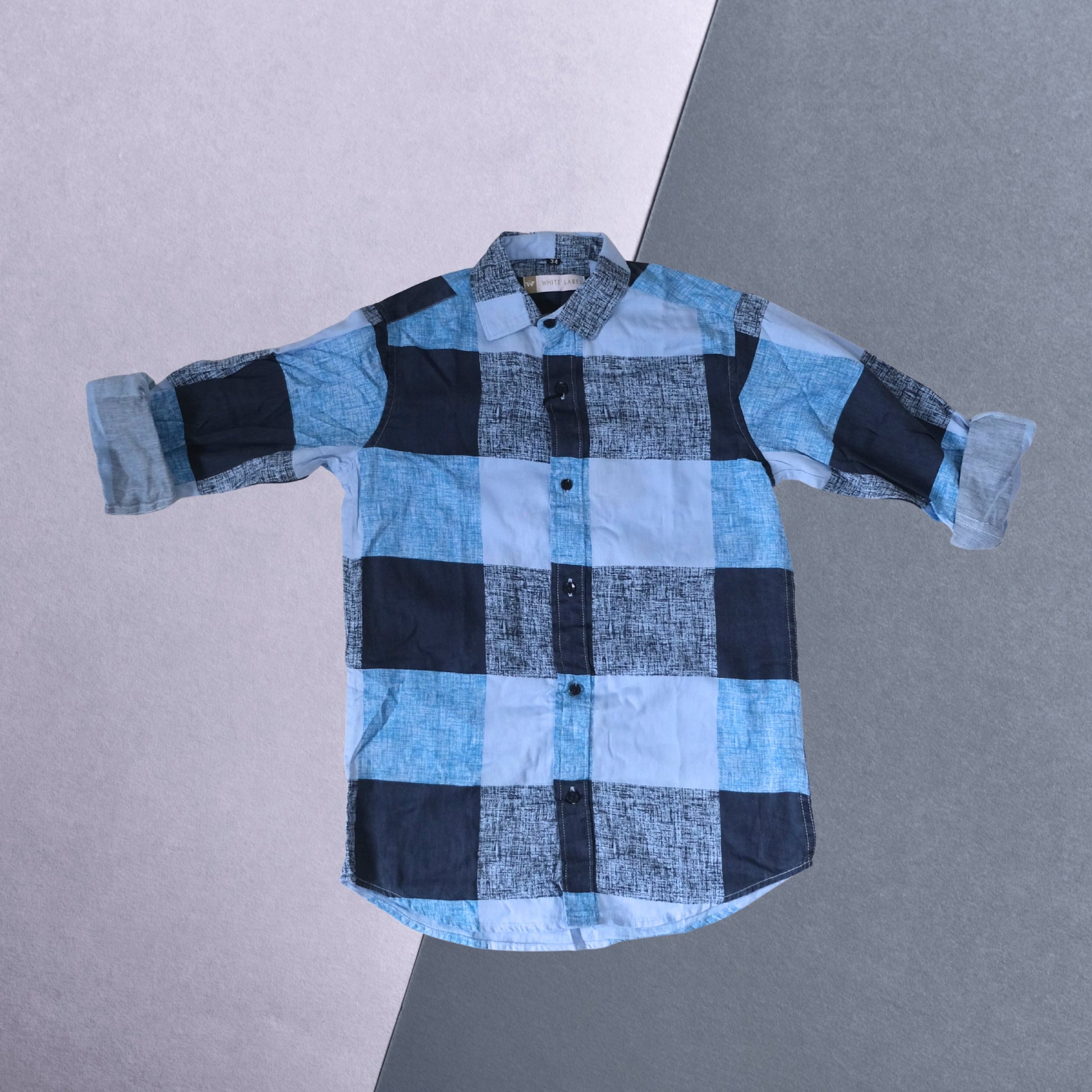 Boys' Blue & Navy Patch Check Shirt – Cool & Contemporary Look