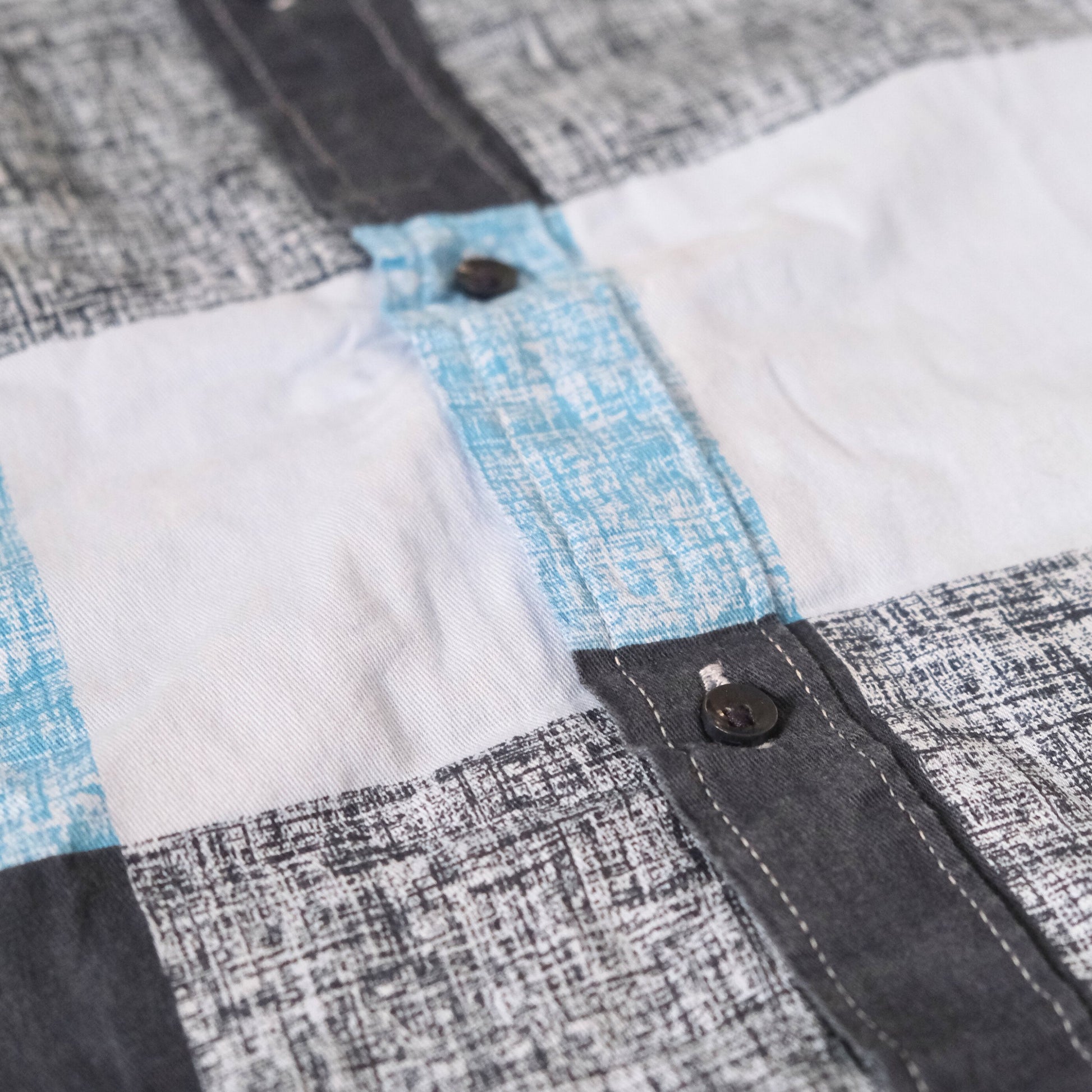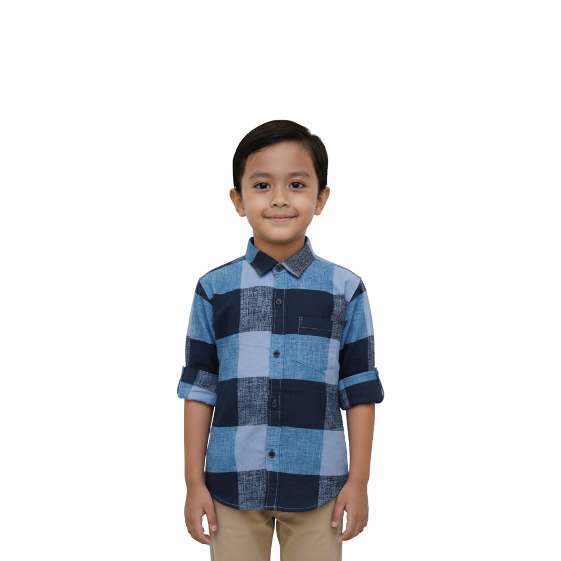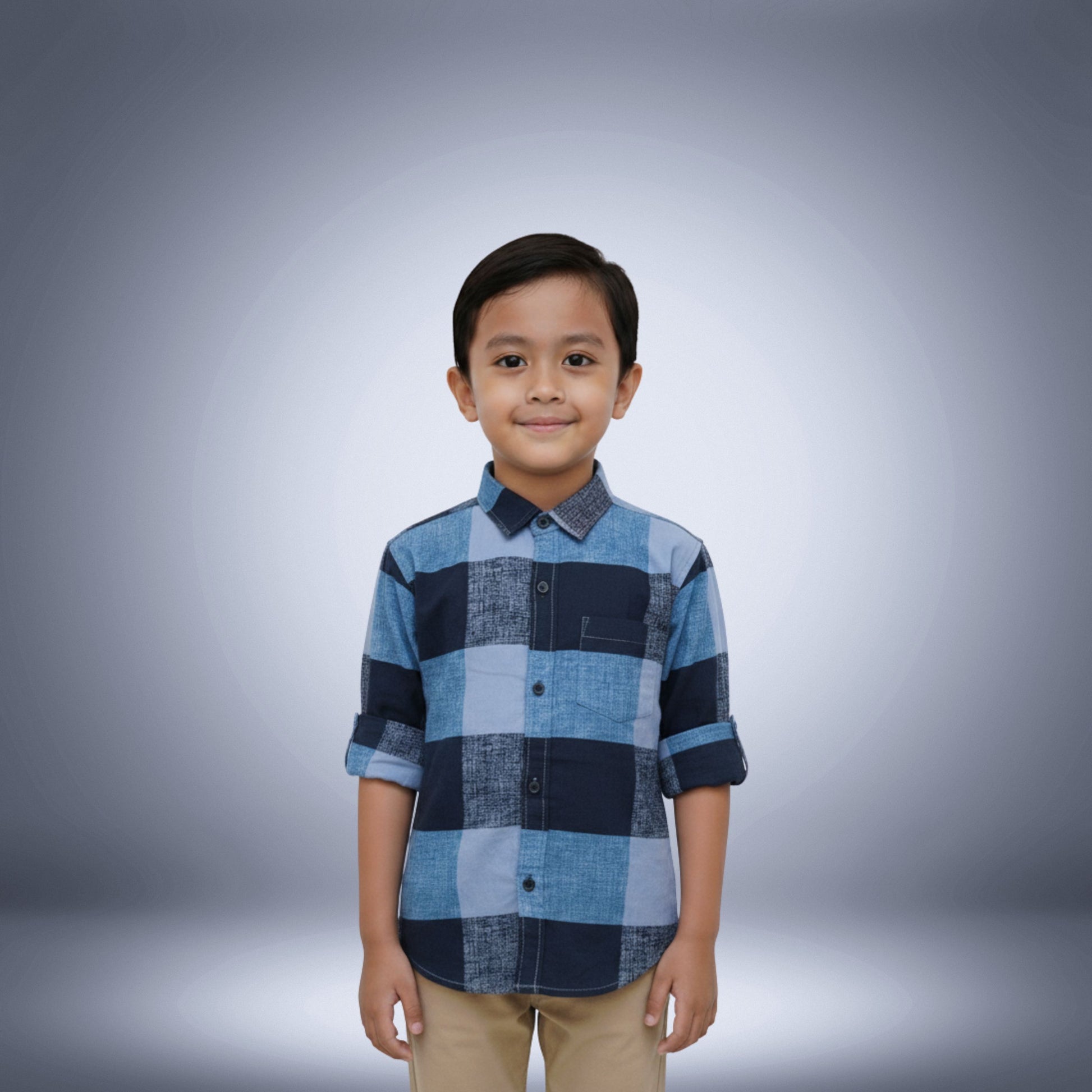 Let your little one step out in style with this trendy blue and navy patch check shirt. Featuring a mix of textured square patterns, this shirt is made from a comfortable cotton blend that’s perfect for everyday wear. The button-down front, chest pocket, and roll-up sleeves add both practicality and flair. A great pick for school, outings, or family get-togethers.