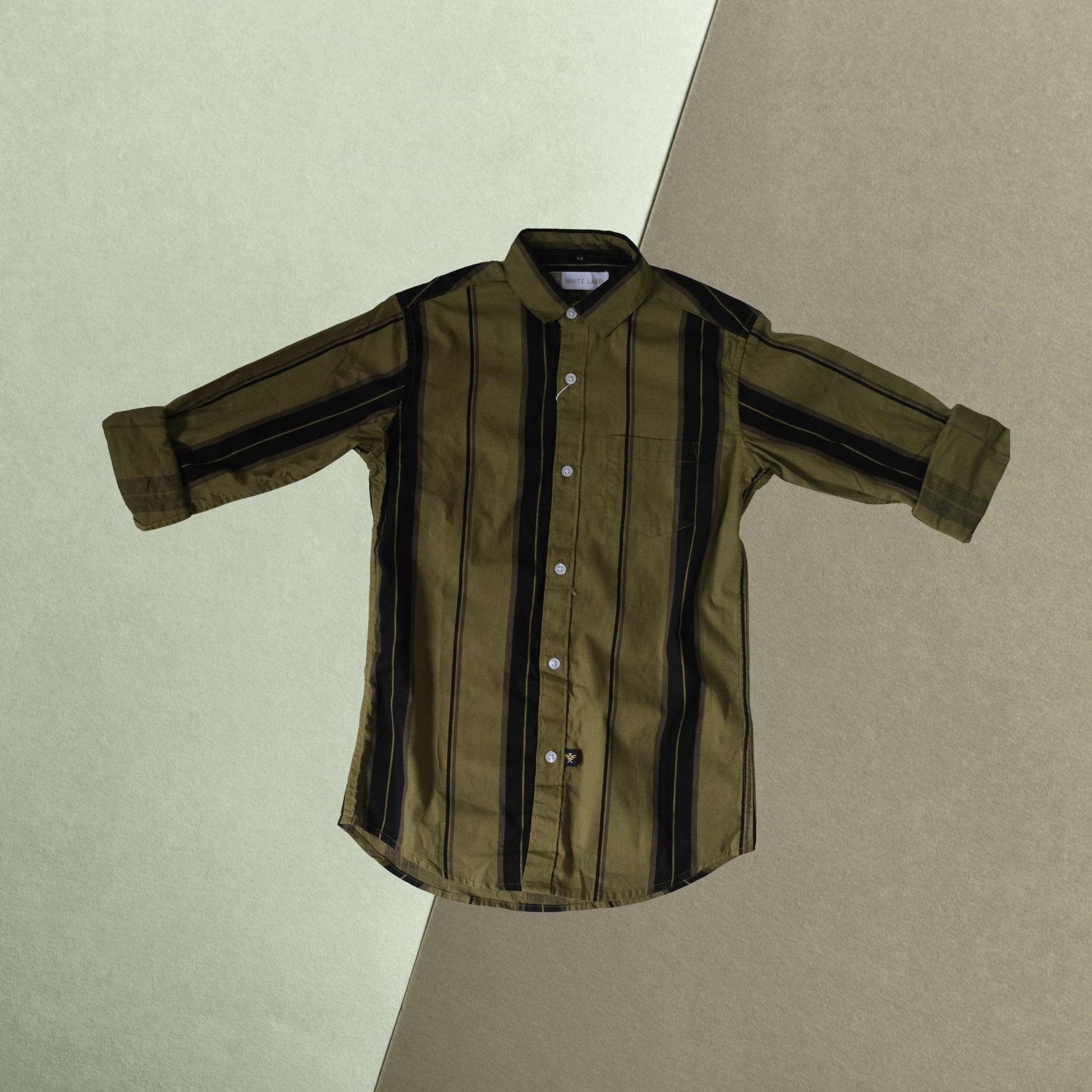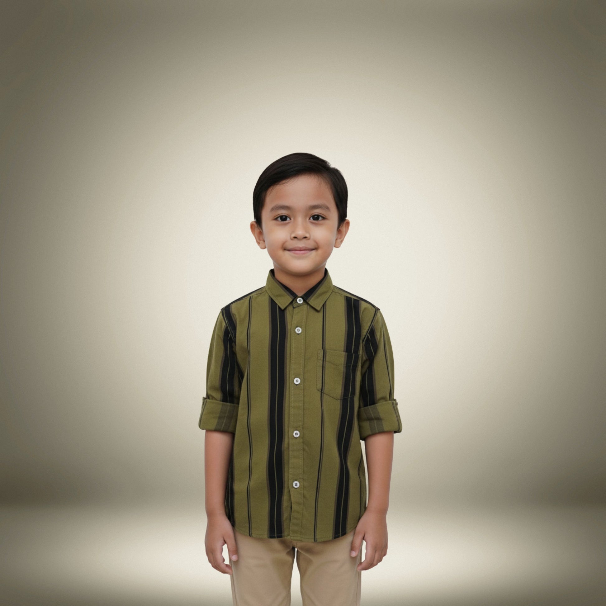 Boys' Olive Green & Black Striped Shirt – Smart & Sleek