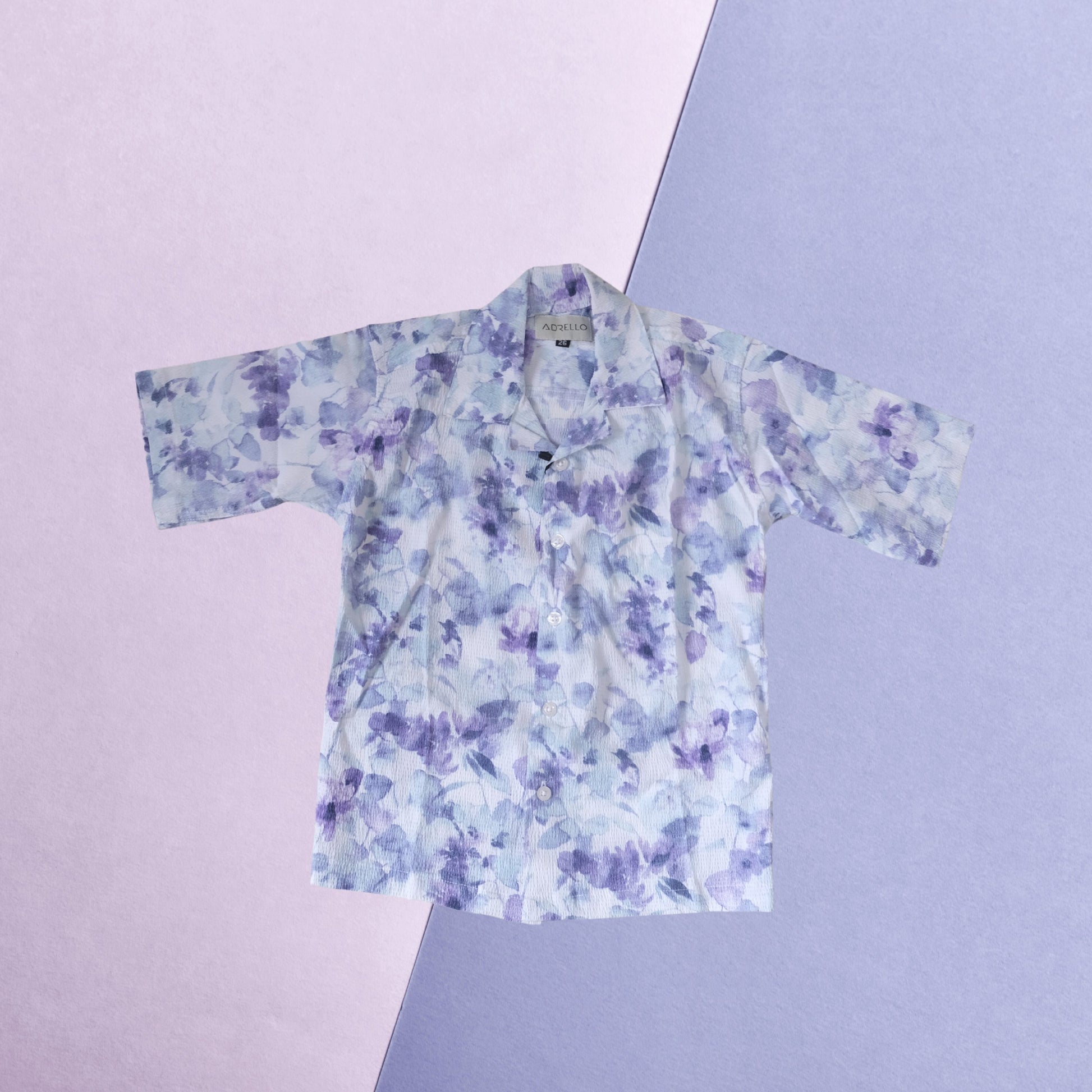 Add a splash of color to your little one’s wardrobe with this charming purple and white floral printed shirt. Featuring a soft, breathable fabric and eye-catching all-over print, this short-sleeve shirt is perfect for warm days and festive occasions. The classic collar and wooden-style buttons give it a polished yet playful look, making it ideal for both casual outings and dressier events.