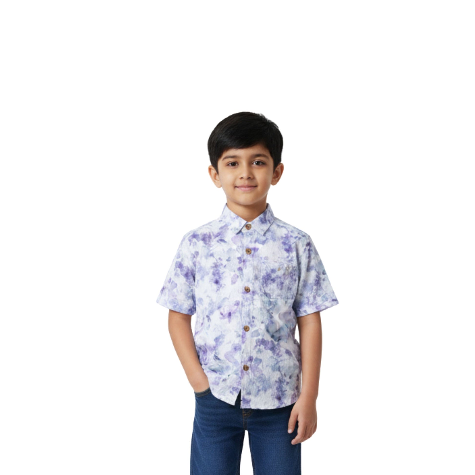 Boys' Purple & White Floral Printed Shirt – Fresh & Stylish