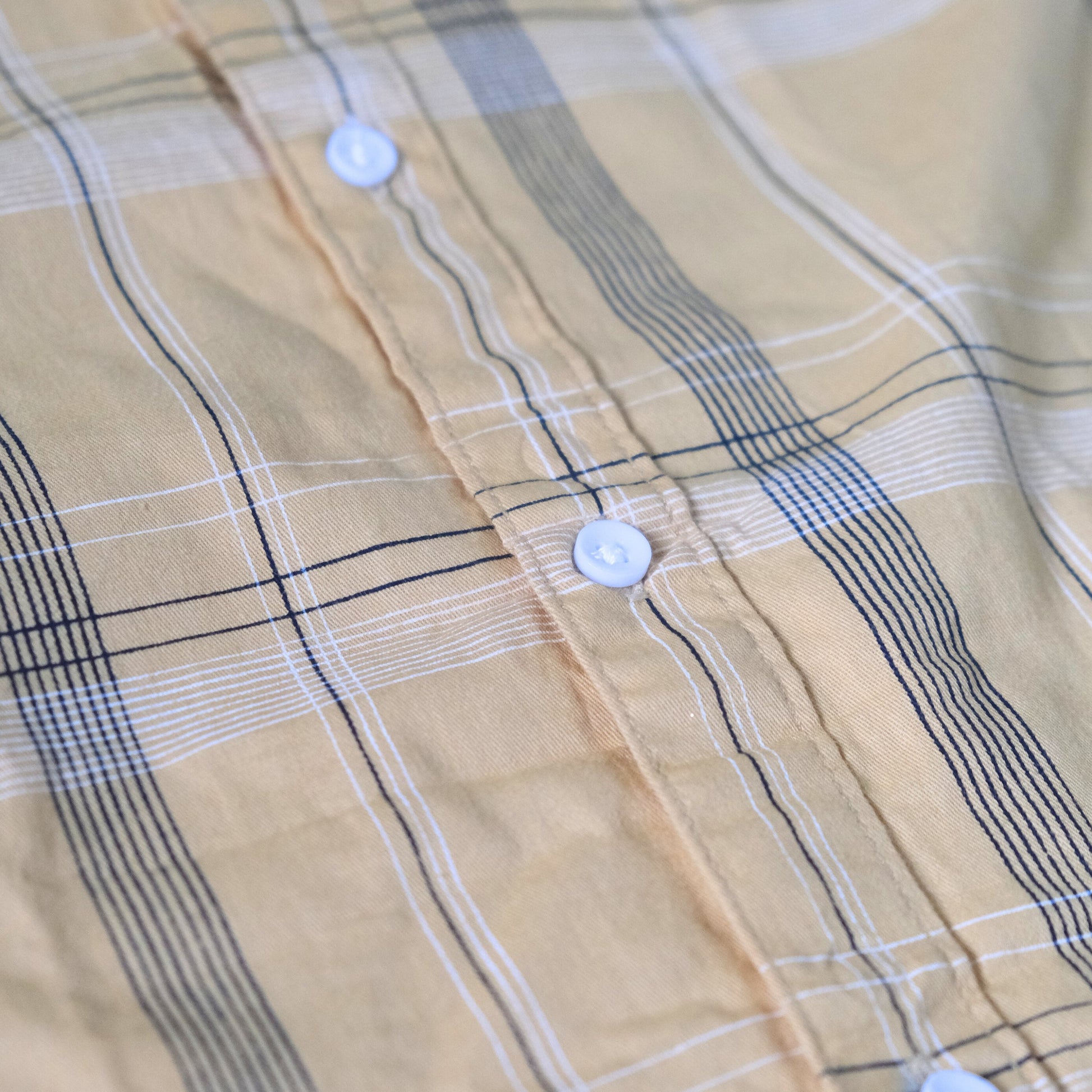 Brighten up your child's outfit with this stylish yellow and black checked shirt. Featuring a classic plaid pattern, this shirt is made from a soft and breathable cotton blend, perfect for all-day wear. The full button-down front and roll-up sleeves add versatility, while the chest pocket with diagonal check detail provides a trendy touch. Ideal for casual outings, festive gatherings, or everyday wear.